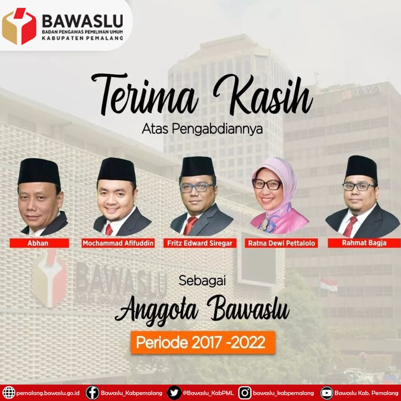 Terima Kasih Atas Pengabdian Anggota Bawaslu Masa Jabatan 2017-2022